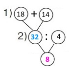 (18 чашок і 14 чашок) — це 4 столи по ? чашок