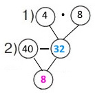 • Від добутку чисел 8 і 4 відняти частку цих чисел: 8 • 4 – 8 : 4 = 32 – 2 = 30