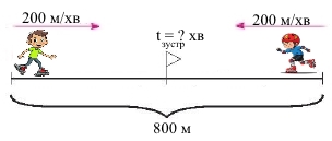 Два друга каталися на роликах по спеціальній доріжці завдовжки 800 м. Вони виїхали одночасно від протилежних кінців доріжки й рухалися з однаковою швидкістю — 200 м/хв. Через скільки хвилин вони зустрілися?