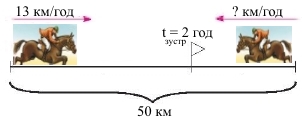 Із двох сіл назустріч один одному одночасно виїхали два вершники й зустрілися через 2 год. Швидкість одного з них становила 13 км/год. З якою швидкістю рухався інший вершник, якщо відстань між селами дорівнює 50 км?