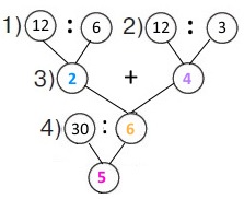 315 : 5 + 135 = 63 + 135 = 198 336 + 336 : 7 = 336 + 48 = 384 (336 + 336) : 7 = 672 : 7 = 96 |