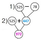 Якщо другого дня вивезли на 78 ц більше, тоді першого – на 78 ц менше, тому 1)_525 78 447 (ц) – картоплі вивезли І дня; |