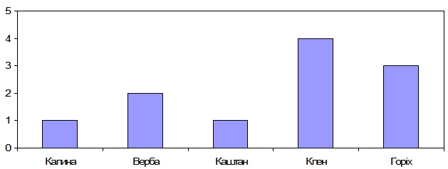 5) З'ясуйте, які дерева та в якій кількості ростуть на вашій пришкільній території.