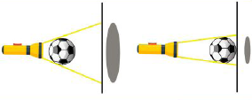 Якщо м’яч віддаляти від джерела світла, то тінь зменшується, якщо наближати – тінь збільшується.