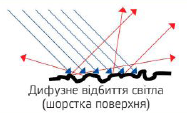 + Відбивання світла залежить від кольору тіла й стану (гладенька, шорстка, нерівна) його поверхні.