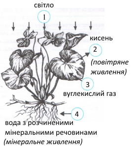 Завдання 2 На малюнку «Живлення рослин» упиши відповідні цифри.