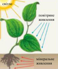 4. Вода з розчиненими мінеральними речовинами (мінеральне живлення з ґрунту).