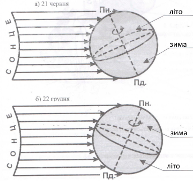 Коли у нас (Північна півкуля) літо/осінь/зима/весна, то в іншій (Південна півкуля) – протилежна пора року зима/весна/літо/осінь.