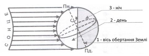 Завдання 1 Зроби на схемі відповідні позначення (день і ніч на Землі).