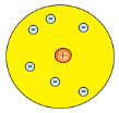Атом складається з позитивно зарядженого ядра, в якому зосереджена основна частина маси атома, навколо якого по замкнутих орбітах обертаються негативно заряджені електрони.