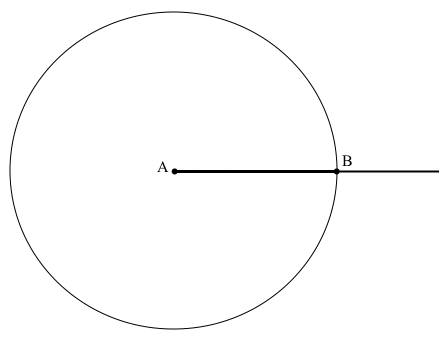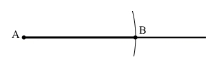 2) Поставити точку А. За допомогою лінійки з поділками від точки А лінійкою відміряти потрібну відстань і поставити точку В.