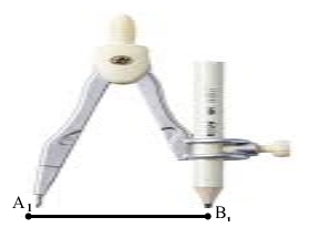 1) Маємо зображення відрізка А1В1 певної довжини. Нерухомий кінець циркуля кладемо у точку А1, а рухомий у точку В1. Відстань між кінцями циркуля дорівнюватиме довжині відрізка А1В1.