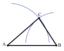 Якби побудовані дуги не перетнулися, то трикутник побудувати було б неможливо. За нерівністю трикутника: кожна зі сторін має бути меншою від суми двох інших.