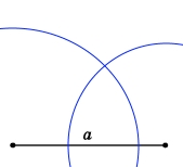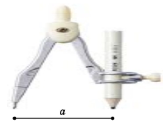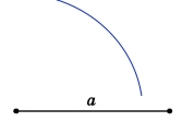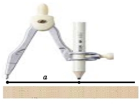 2) Визначимо довжину відрізка а. Нерухомий кінець циркуля прикладемо до лівого кінця відрізка a, рухомий кінець циркуля – до правого кінця відрізка а. Маємо розхил циркуля, що дорівнює а.