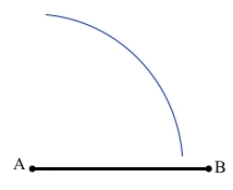 5) За допомогою циркуля, з розхилом b, побудуємо дугу кола з центром у лівому кінці відрізка а і радіусом b.