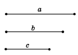 Нехай треба побудувати трикутник АВС зі сторонами, які дорівнюють трьом побудованим відрізкам а, b, c.