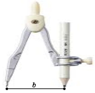 4) Визначимо довжину відрізка b. Нерухомий кінець циркуля прикладемо до лівого кінця відрізка b, рухомий кінець циркуля – до правого кінця відрізка. Маємо розхил циркуля, що дорівнює b.